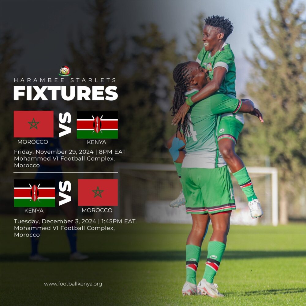 The Harambee Starlets, Kenya’s national women’s football team, are preparing for an exciting international challenge as they face the Morocco Women’s National Team in two friendly matches scheduled for the November FIFA window.