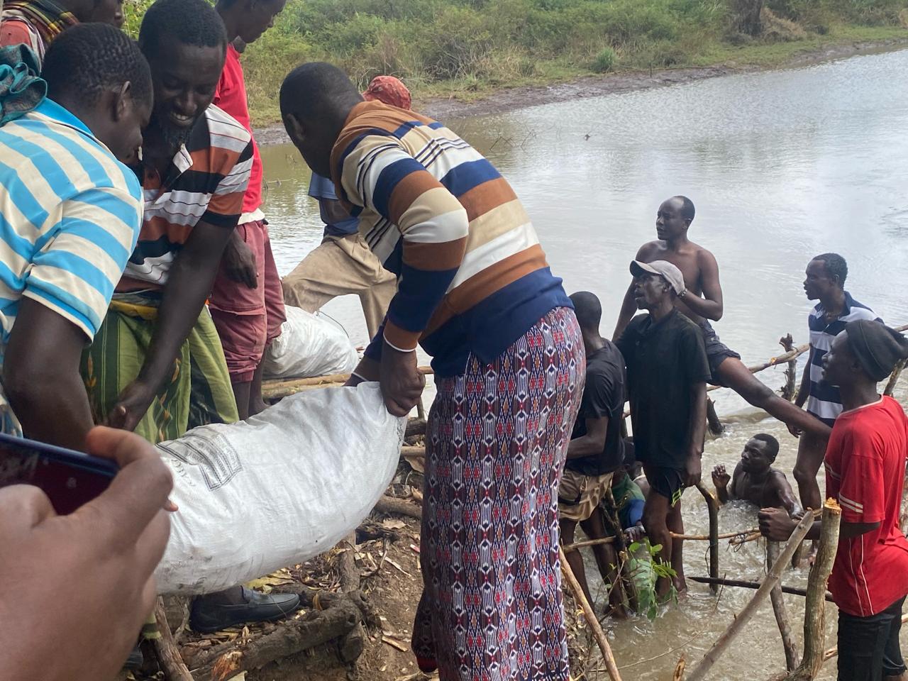 Hassan Galgalo, a resident of Chara who supported the volunteer resident building a temporary dyke with food, said it was impossible to plant trees in the area as the water is salty.