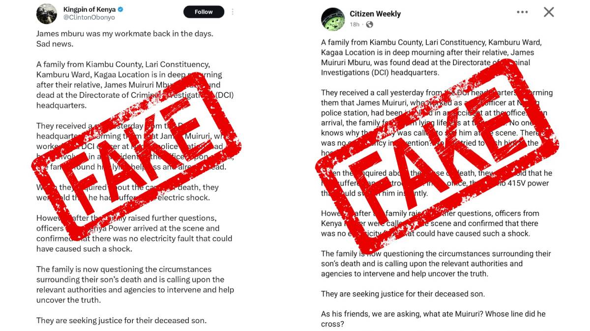 Corporal Muiruri — attached to the DCI Kajiado North Sub-County offices — died on Saturday, February 21, with speculations rife on social media that he passed away at the DCI Headquarters along Kiambu Road.