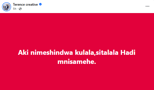 In response to the condemnation, Terence Creative posted a solemn apology on his social media, an image of which was later shared publicly. The apology was written in both Swahili and English.