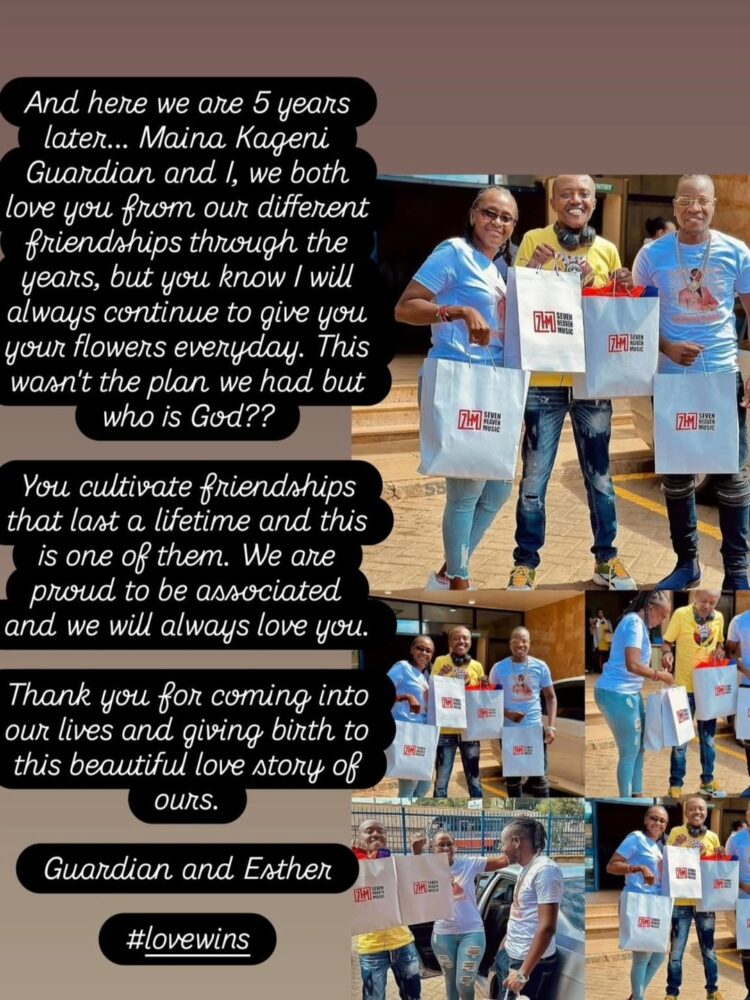 “And here we are five years later… Maina Kageni, Guardian and I, we both love you from our different friendships through the years, but you know I will always continue to give you your flowers every day,” she wrote.