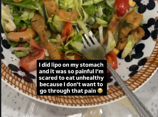 “I did lipo on my stomach, and it was so painful I’m scared to eat unhealthy food because I don’t want to go through that pain,” she wrote.