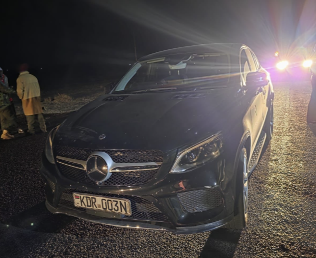 A closer inspection revealed that the Mercedes Benz matched the description of a stolen vehicle earlier reported, but had been tampered with. A fake front registration plate, KDR 003N, had been fitted to beat detection.