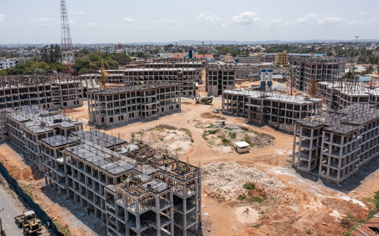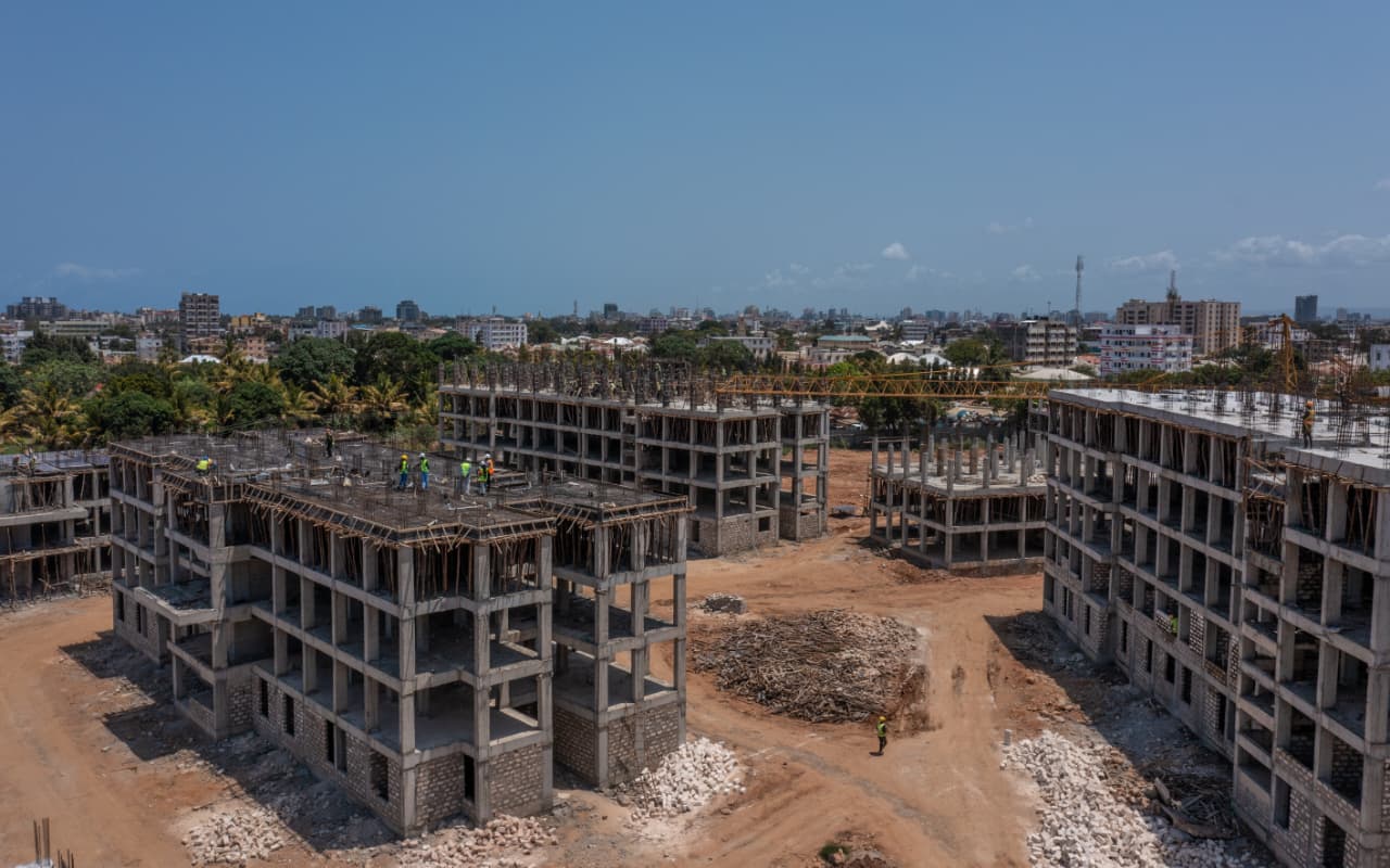 Construction works are in high gear at the Nyali VOK Affordable Housing Project in Mombasa County where the Government is putting up 1,932 housing units for sale through Boma Yangu.
