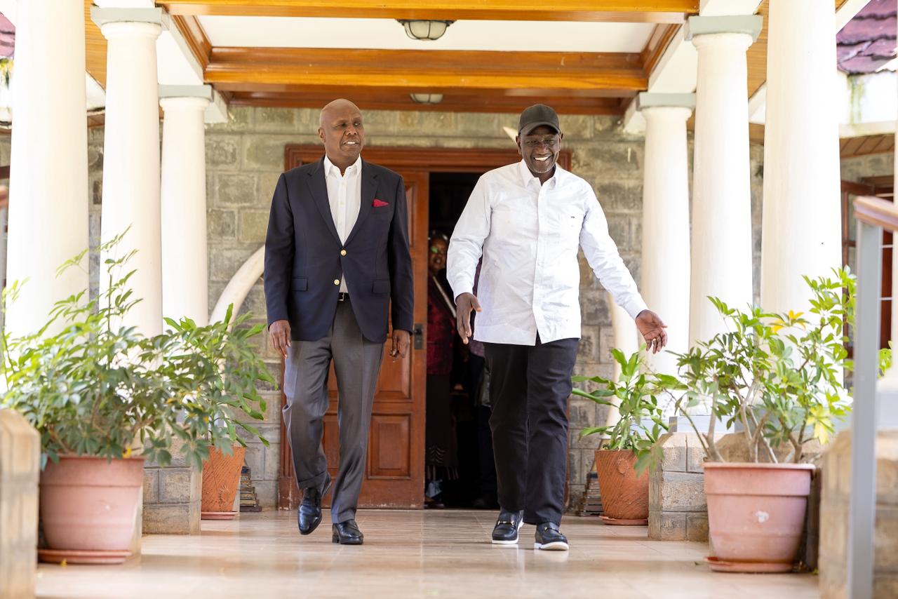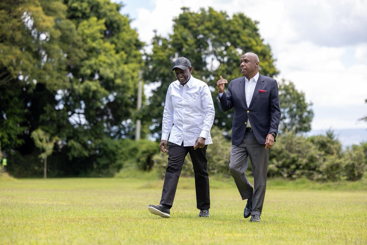 President Ruto arrived at the Kabarak Farm in Nakuru County aboard a military helicopter, and was welcomed by Gideon, just a day after the latter withdrew from the Baringo Senatorial By-election.