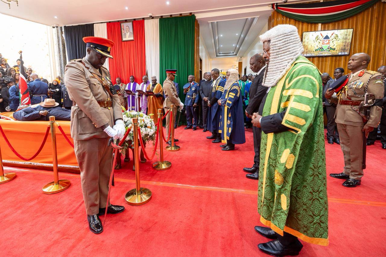 The service was supposed to start at 9 am, but Raila’s body was first laid in state for Members of Parliament, dignitaries and family members to also view it and pay their last respect.