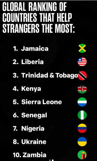 Jamaica has been officially named the world’s most helpful nation according to the new World Happiness Report 2025, while Kenya is ranked 4th globally in the same category.