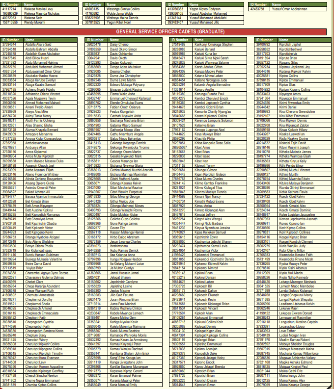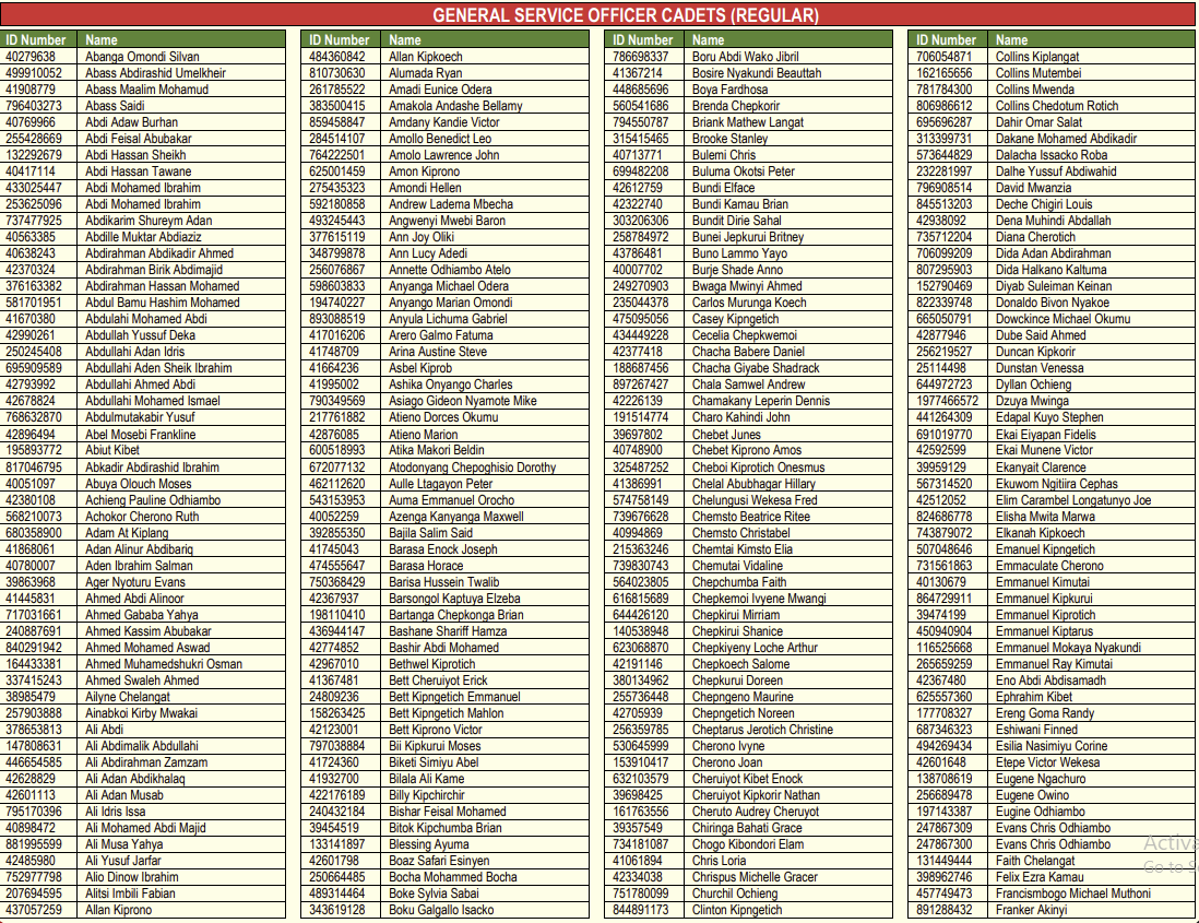 The Kenya Defence Forces (KDF) has announced the shortlisted candidates for the vacancies of GSO Cadets (Regular and Graduate), Specialist Officers and Tradesmen/Women.