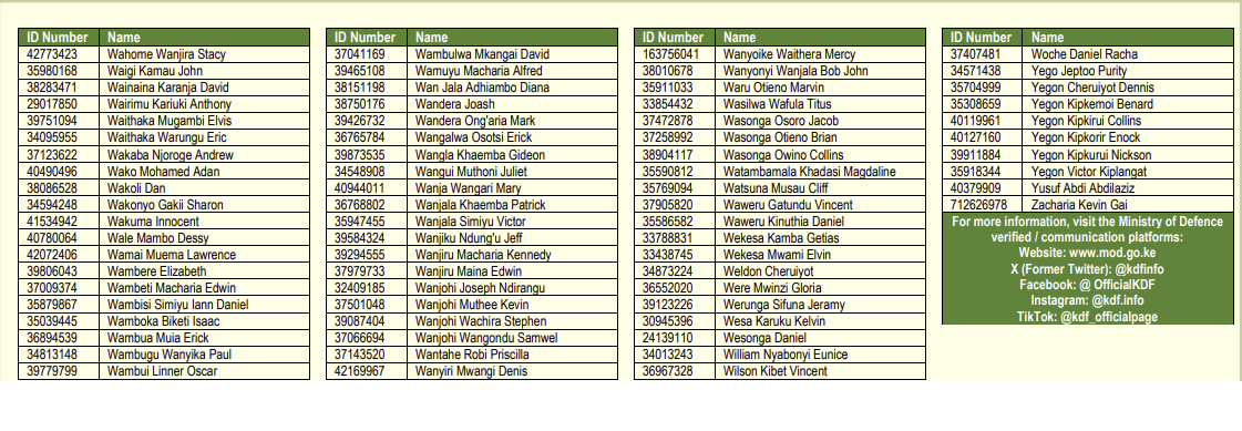 Link to the names: https://www.mod.go.ke/news/shortlisted-specialist-officers-and-tradesmen-women-2025/