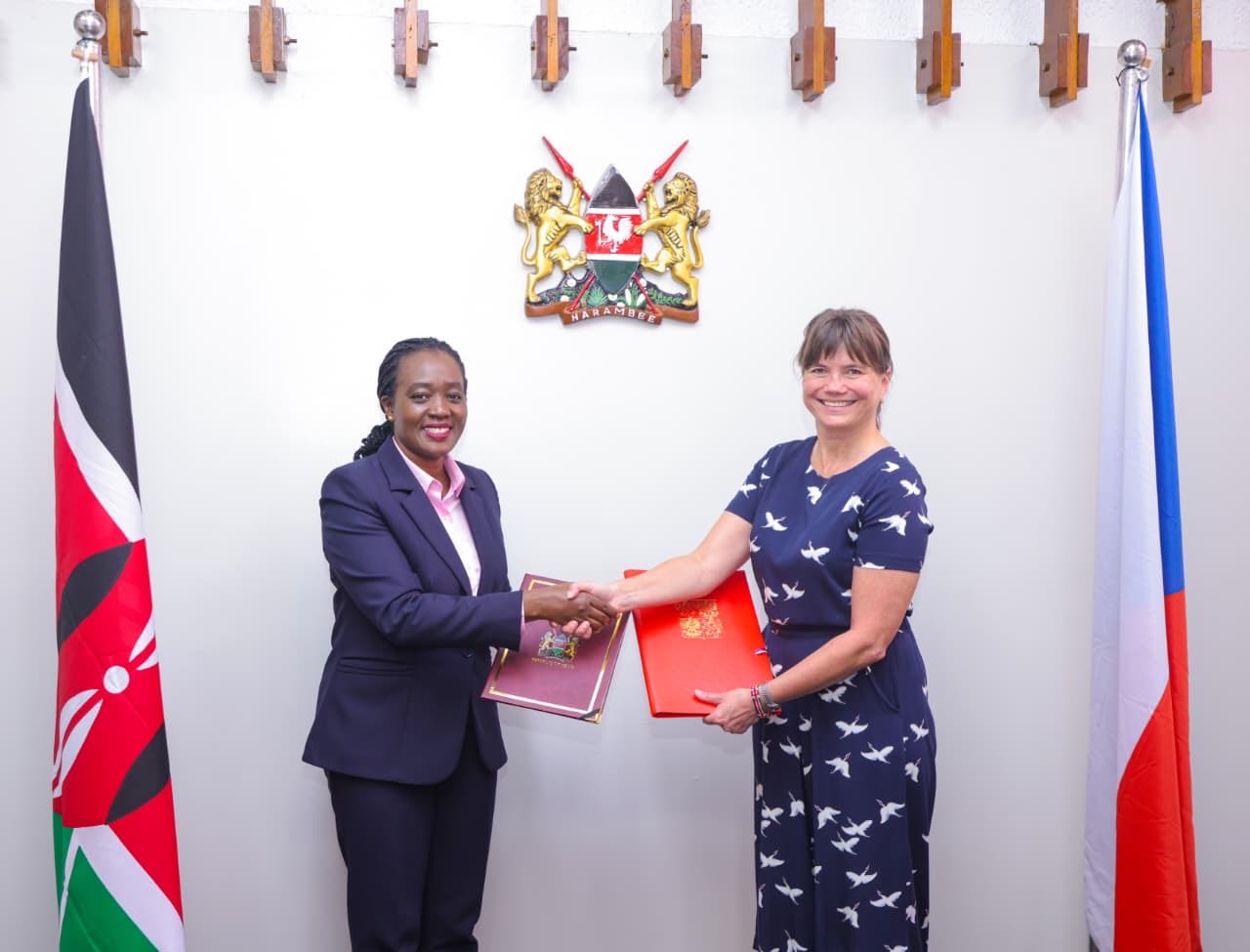 The agreement was signed by Kenya’s Cabinet Secretary for Defence, Soipan Tuya, and the Czech Republic’s Ambassador to Kenya, H.E. Nicol Adamcová.