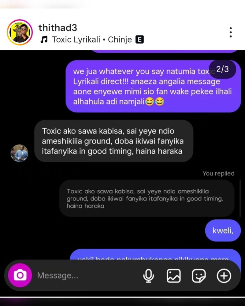 Kenyan rap heavyweight Khaligraph Jones has given a massive nod to rising star Toxic Lyrikali, hinting that a major musical collaboration could be on the cards.