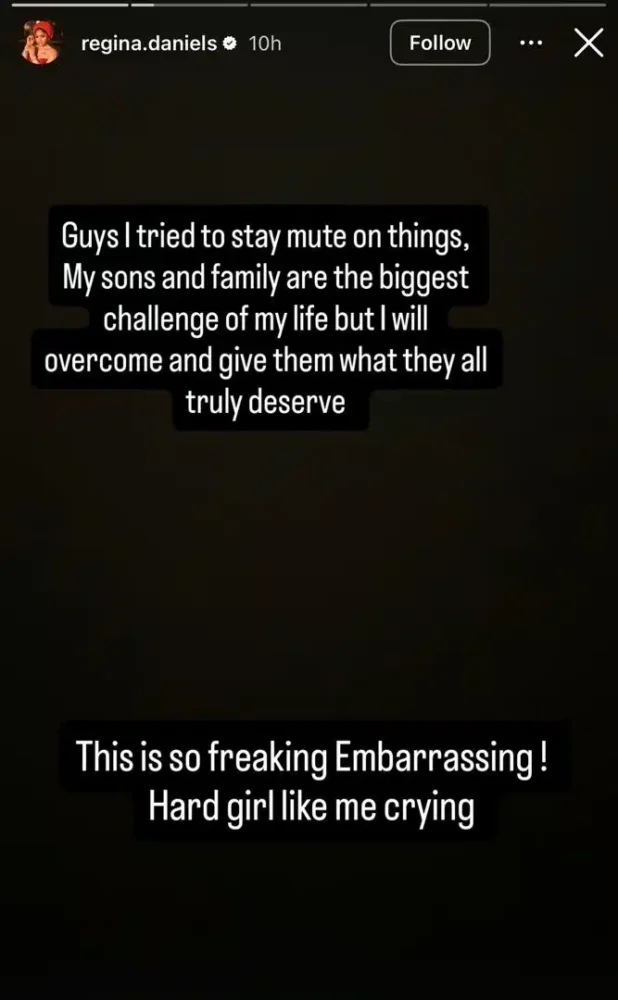 Popular Nollywood actress, Regina Daniels has taken to social media in tears, accusing her husband, Senator Ned Nwoko of ordering the arrest of her elder brother and sister amid their escalating marital dispute.