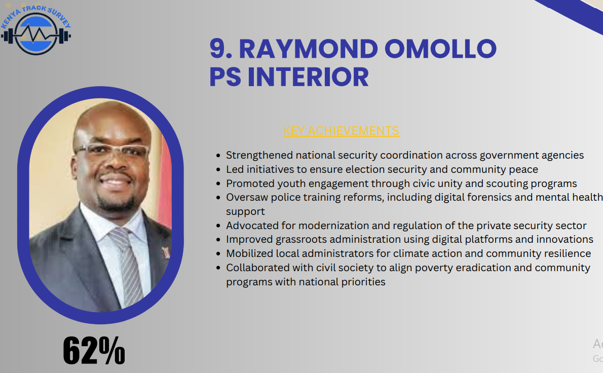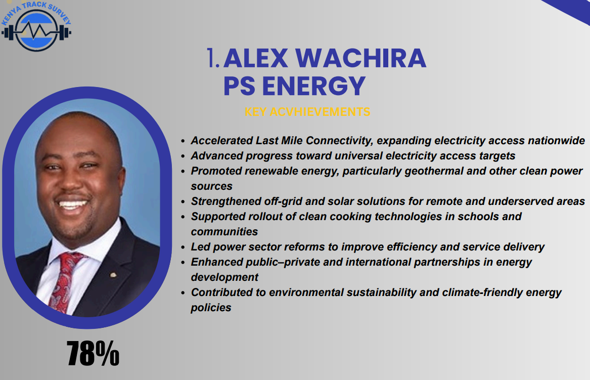 Alex Wachira is the best performing Principal Secretary (PS) in Kenya, this is according to Kenya Track Survey.