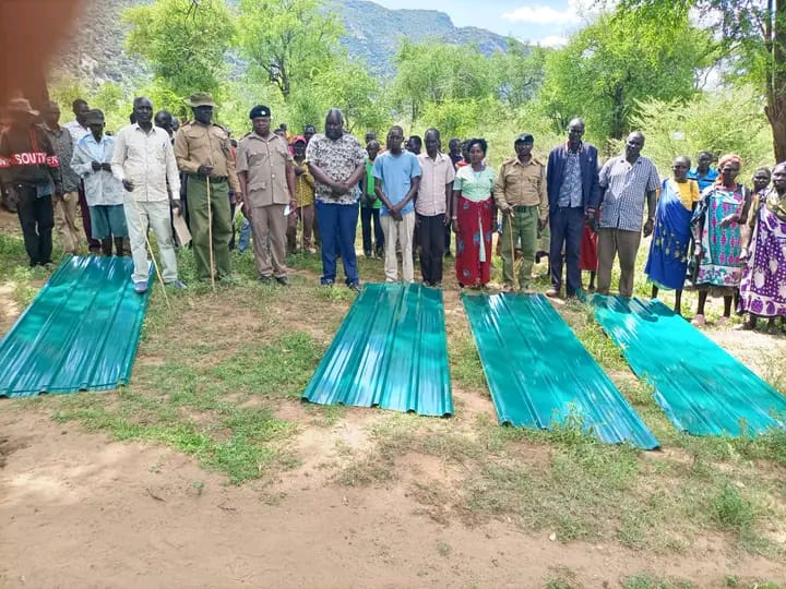Hundreds of families in banditry prone areas of Cheptulel and Chepkogogh locations which had been displaced by bandits for years in Pokot Central Sub-County, West Pokot along the West Pokot and Elgeyo Marakwet counties border have finally been supported and handed over 1400 iron sheets to support their resettlement.