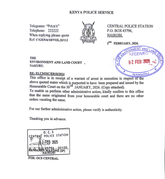 This is after the Nakuru Environment and Land Court issued a warrant of arrest against Mr. Pius Mbugua Ngugi on January 30, 2026 for failure to pay the aforementioned debt.