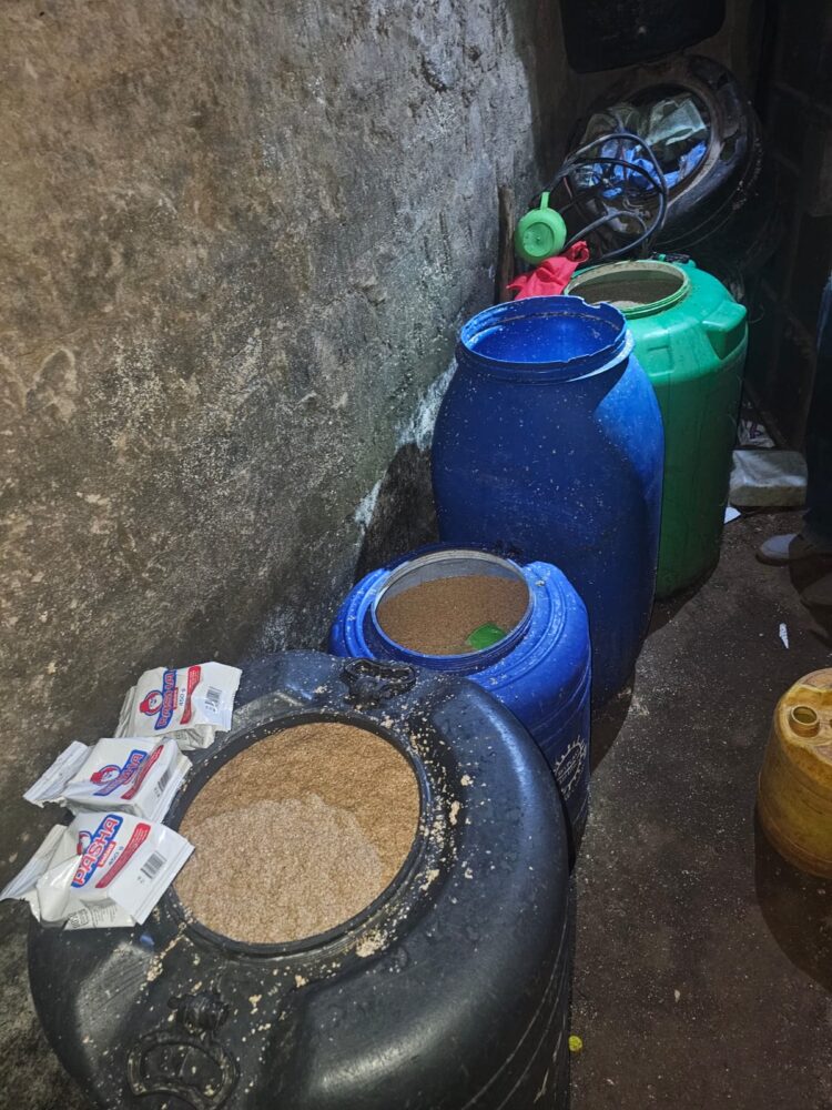 During the raid, NACADA officers uncovered a well coordinated syndicate that involves production of the illicit brew laced with industrial yeast to speed up the fermentation process. According to the Authority, the contents of the drink could be potent since the ingredients are unsafe for human consumption.