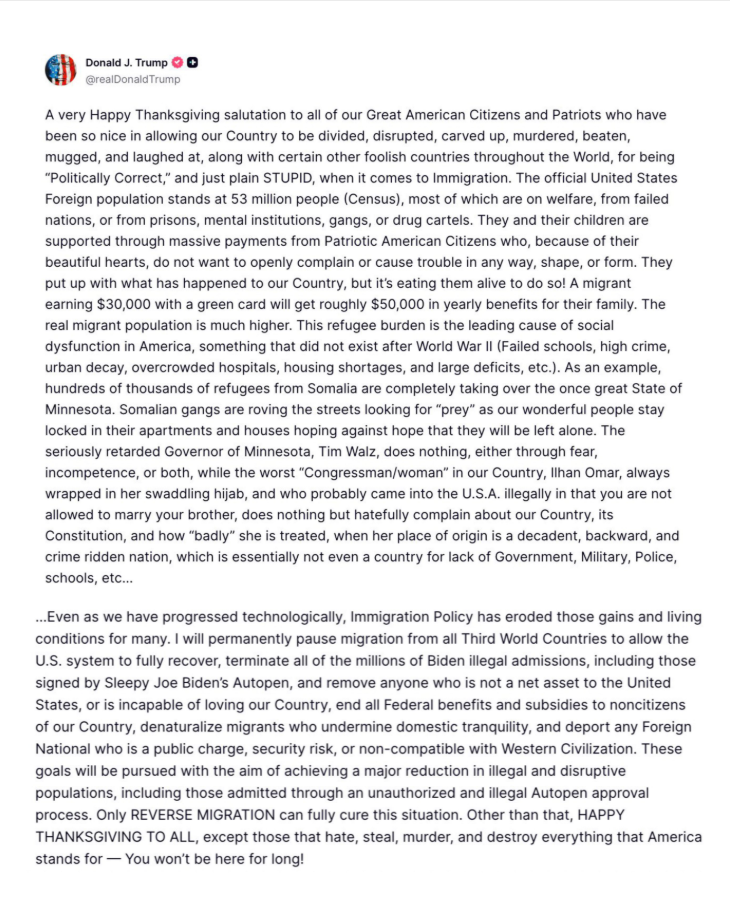 President Donald Trump has announced a significant and controversial policy proposal, stating that he would “permanently pause migration from all Third World Countries” if he is re-elected to office.