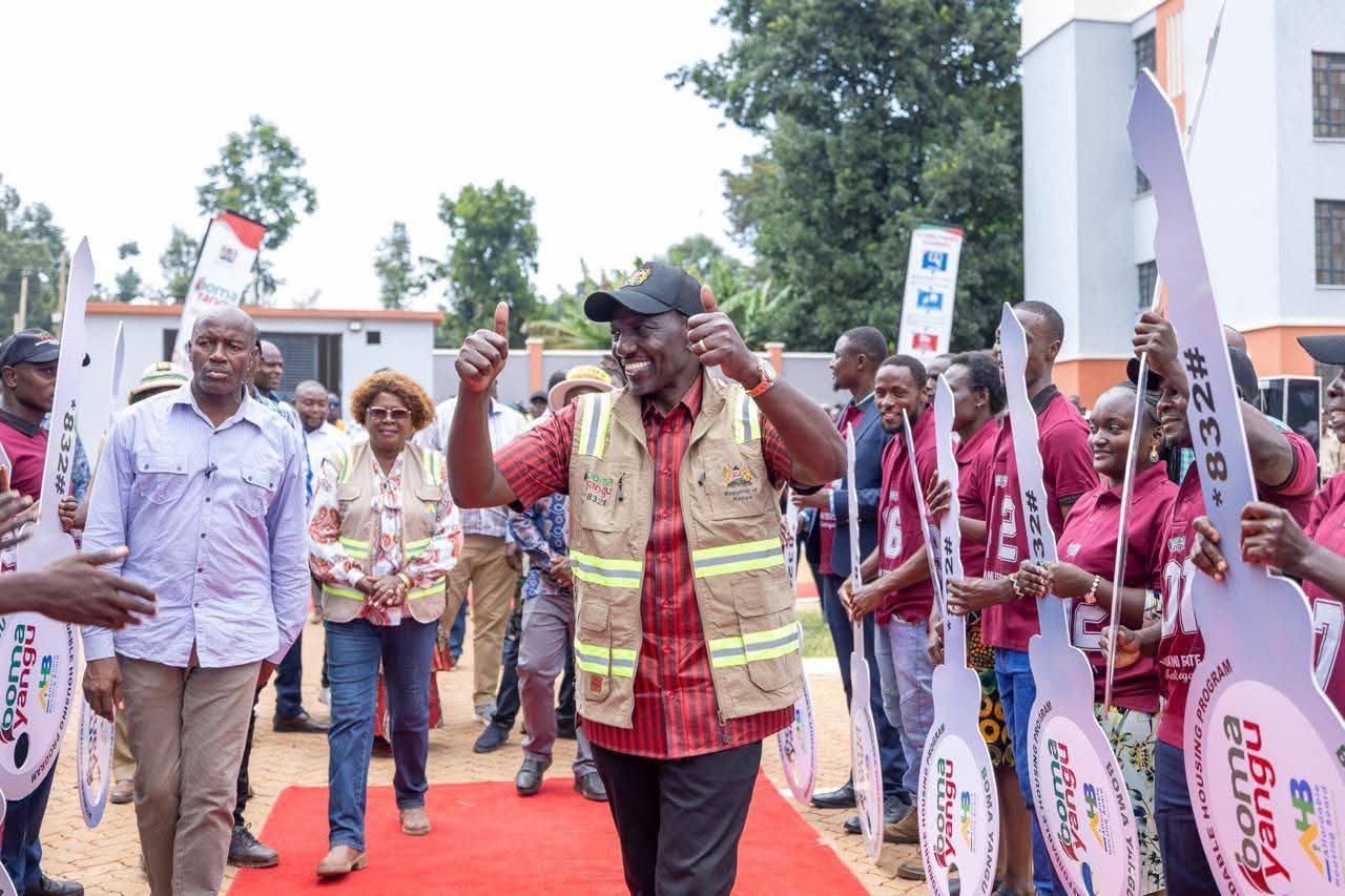 President William Ruto on Tuesday, March 17 afternoon handed over keys to 180 new home owners at Milimani Boma Yangu Estate Phase 1 in Kakamega County, marking a significant step towards dignified and accessible housing for Kenyans.