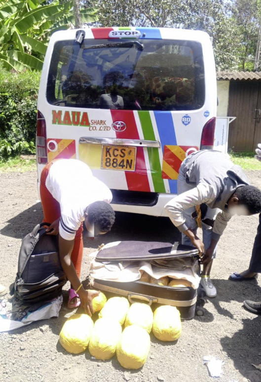 The officers on routine check flagged the vehicle, registration number KCS 884N, travelling from Nairobi to Maua. Upon conducting a thorough search, the officers discovered approximately 25 kilograms of a substance suspected to be the narcotic drug cannabis sativa.