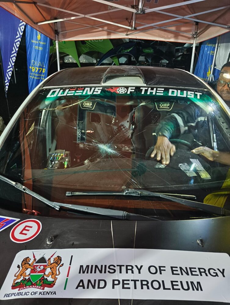 Kenyan rally driver Pauline Sheghu saw her hopes of competing on the final day of the Safari Rally Kenya dashed after her rally car’s windscreen and side windows were vandalised, forcing her to retire from Sunday’s action.
