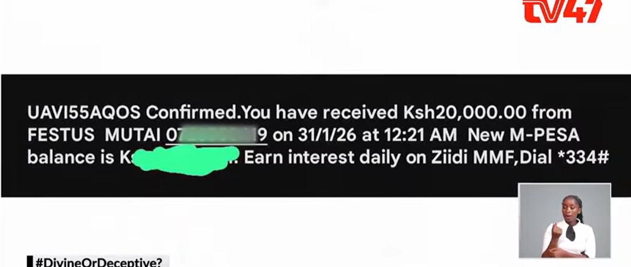 After winding up their exclusive interview with Prophet Owuor, each of the TV47 crew members received KSh20,000 each from the church via their M-Pesa numbers. At the time, Prophet Owuor himself said the money was not meant to manipulate the investigative piece, but to bless the crew.